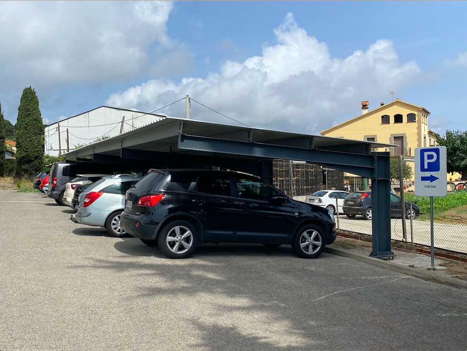 Marquesinas prefabricadas para aparcamiento de vehículos y espacios de almacenaje en el exterior.
